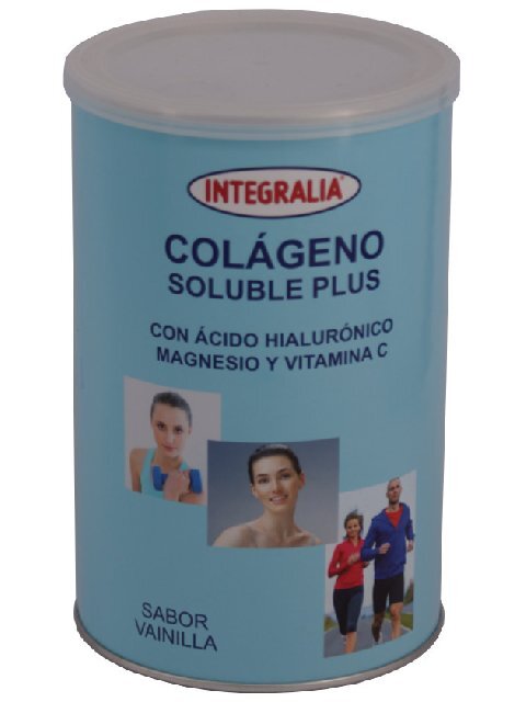El Colágeno Soluble Plus de Integralia de 360 gr, es un complemento alimenticio a base de colágeno hidrolizado, magnesio, Vitamina C y Ácido Hialurónico.