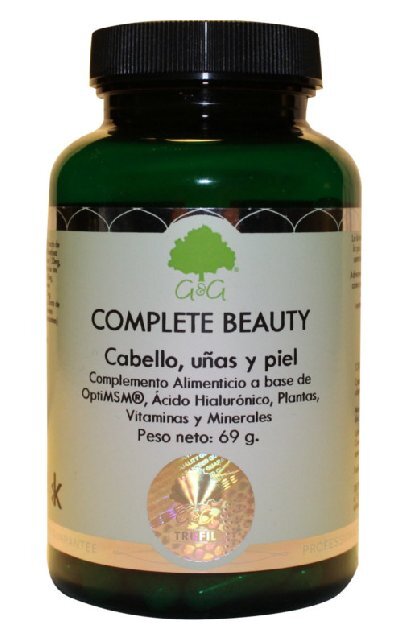 COMPLETE BEAUTY; contiene OptiMSM, Espirulina, Bambú y Acido Hialurónico. Estos ingredientes actúan de manera natural contra el envejecimiento celular, potenciando tu imagen y belleza.