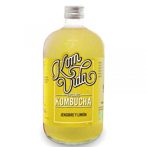 Ingredientes: Agua mineral, azúcar de caña ecologica*, té ecologico (2%), cultivo de kombucha (simbiosis de microorganismos y levaduras), jengibre ecológico, limón ecológico.