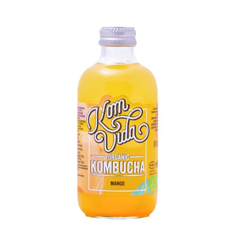 Ingredientes: agua, azúcar, té (0,9%), cultivo de kombucha (simbiosis de bacterias y levaduras), puré de mango (1,8%).