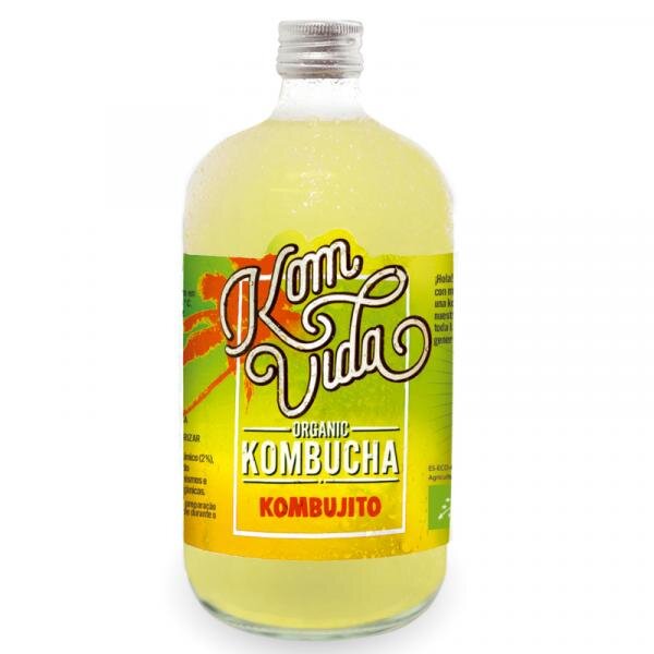 Ingredientes: Agua, té verde ecológico, limón, lima, hierbabuena, azúcar de caña ecológica, cultivo de kombucha (simbiosis de microorganismo y levaduras).