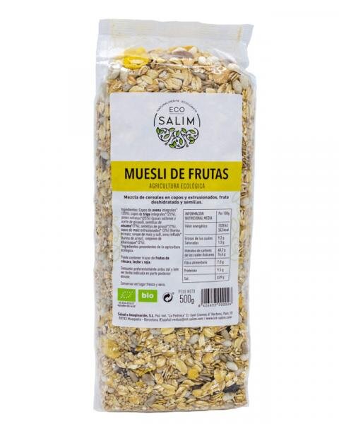 Ingredientes: Copos de avena integral, copos trigo integrales, pasas sultanas (25%), semillas de sésamo, pipas girasol, arroz hinchado (harina de arroz), cornflakes (harina de maíz, sirope de maíz y sal), orejones de albaricoque (2%).