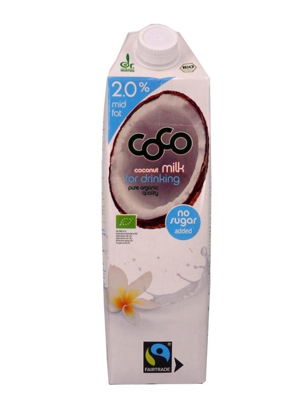 Ingredientes: Leche de coco ligera ( 39% ),agua, zumo de coco a partir de concentrado de zumo de coco ( 23% ), sal marina, espesante : goma gellan.