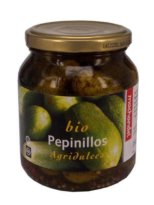 Ingredientes: Pepinillos*, vinagre*, jarabe de agave, semillas de mostaza (amarilla)* agua, sal marina, eneldo, cebolla, pimiento rojo.