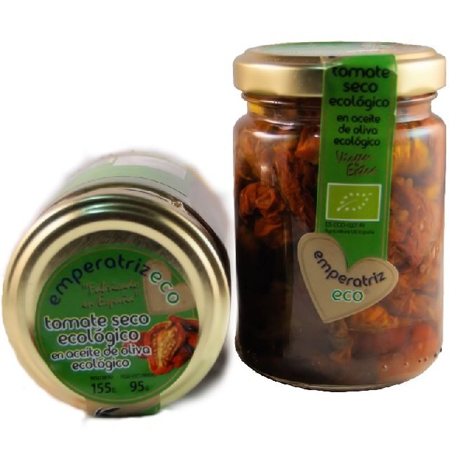 Nuestros tomates son sometidos a un lento proceso de secado al sol para obtener un producto deshidratado con un sabor muy intenso y particular. El tomate seco destaca por sus niveles de vitamina A, potasio y magnesio. El uso de aceite de oliva ecológico en la elaboración de la conserva, además, añade un punto extra tanto en el sabor como en la calidad.